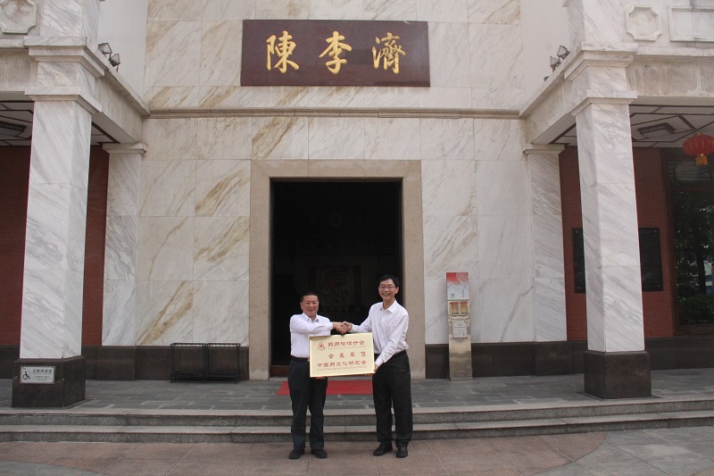 中国药文化研究会会长禹同生给陈李济党委书记、董事长石洪超颁发中国药文化研究会药用柑橘分会的会长单位牌匾