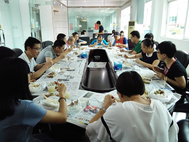 工会利用午餐的十几分钟与有关人员讨论加强劳动竞赛的建议和意见