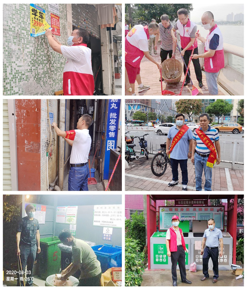 他们穿街过巷到商户、居民中派发《垃圾分类小常识》《广州有礼》等宣传手册,对垃圾分类和创文知识进行讲解;清除垃圾杂物,铲除清理牛皮癣小广告;清理路面、清扫分拣绿化带杂物;引导社区居民学习和掌握垃圾分类知识。从9月到创文结束前每天还安排2名党员协助社区开展文明城市创建工作,参与文明创建宣传及志愿引导工作;规范主干道、重点区域共享单车摆放;开展路面联防联控巡查等。遍布广州各区居住地的党员在社区中,利用休息时间进行入户宣传,指导邻里垃圾分类。