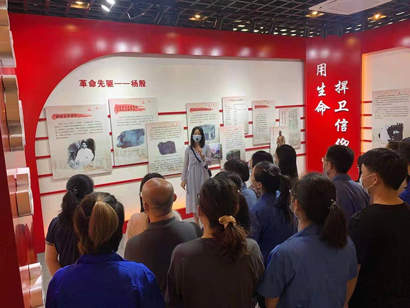 为发扬红色传统,传承红色基因,2021年4月15日下午,第五党支部组织党员参加“学党史守初心,讲好杨殷故事”学习教育的主题党日活动。在陈李济博物馆党建展厅,党员们通过听取讲解,观看文字图片等资料,缅怀学习杨殷烈士用生命捍卫信仰的先进革命事迹。