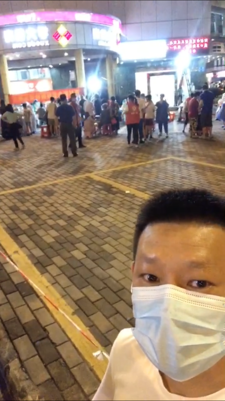 我是退伍军人志愿者:5月26日,本人户藉所在的西村街大岗元社区居委会晩上19点15分在党员微信群上发出紧急通知急需防疫防控志愿者。我收到信息后义不容辞直奔集合点,到集合点报到后党小组组长分配好工作与注意事项就直接投入工作中。这时已看到人群排了约1千米远,这还是暂时的估计,接下来还有更多的群众过来核酸检测。