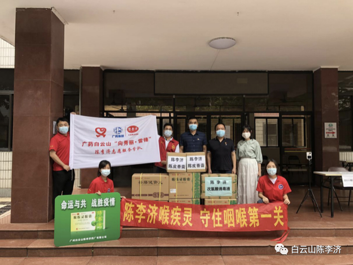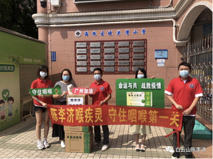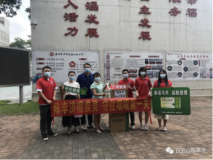 6月8日,白云山陈李济分别向广州市海珠区晓港湾小学、广州市五中附属初级中学捐赠了喉疾灵胶囊、陈皮香囊等物资一批,助力学校疫情防控工作,用行动呵护和关怀祖国的花朵。
