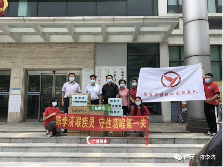 6月10-11日,白云山陈李济杨殷红色突击队马不停蹄地向天河区元岗社区、海珠区五凤社区捐赠了壮腰健肾丸、喉疾灵胶囊、陈皮香囊、次氯酸消毒液等防疫物资一批,做好抗疫基层一线的物质供应保障,为抗疫工作提供有力支持。