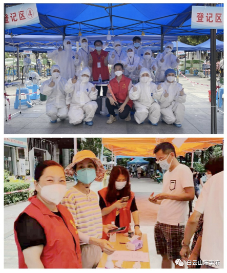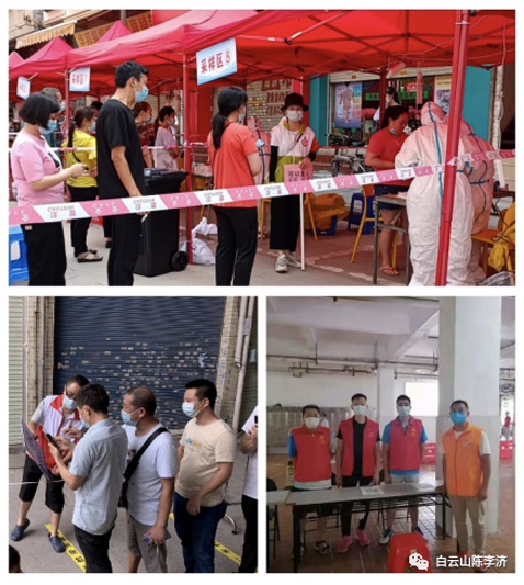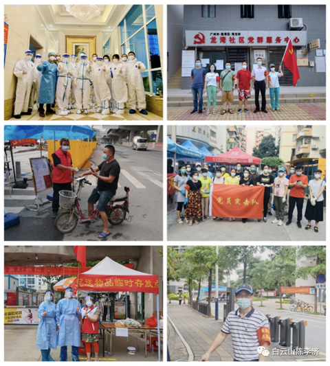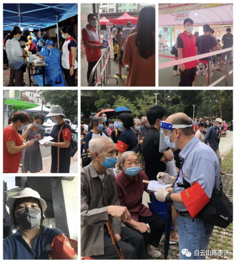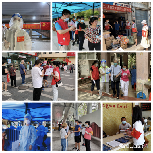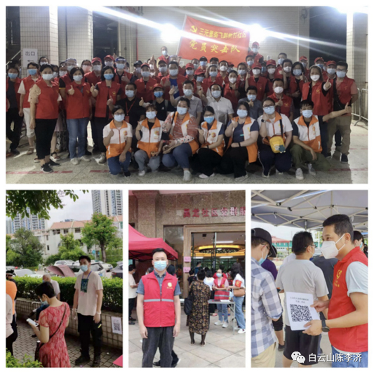 陈李济杨殷红色突击队响应市国资委、广药集团的号召在荔湾、越秀、海珠、番禺、南沙、天河、黄埔、白云以及佛山等地投入战斗加入志愿者工作。他们有夫妻档、有母女花、还在哺乳期的妈妈、有“老将”、有“新兵”……从5月21日至今短短十多天时间里,大约有150人次参加了疫情防控工作,他们当先锋、做表率,一呼百应,身先士卒,发挥党支部战斗堡垒作用和党员先锋模范作用,在社区一线默默奉献,在车间岗位辛勤忙碌,让党旗在防控一线高高飘扬。