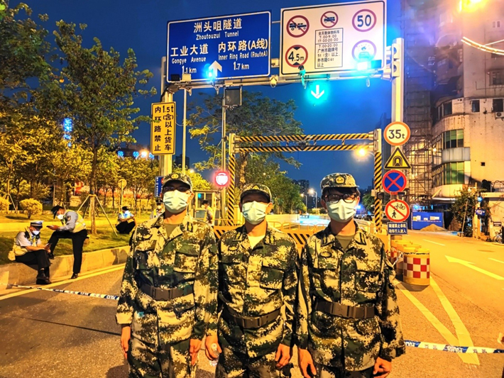 从第二天开始就分成3个班,我们继续上夜班,相继在洲头咀、珠江隧道、鹤洞大桥、珠江大桥值守。过程中发现有些群众会破坏水马逃离出去,不过我们在不同的地方设置了点了都一一将逃离的群众劝返回来,耐心跟他们说明封闭的理由,还有逃离出去,万一造成疫情扩散,会触犯法律。经过多次耐心的劝说,群众慢慢开始理解,闯卡的人越来越少,街上越来越平静,大家都自觉在居家隔离,还有配合社区做核酸检测。对于从外面过来的人员,我们都做好解析,里面是封控区,只进不出,考虑清楚。有不少误闯的人员,都被我们拦了下来。