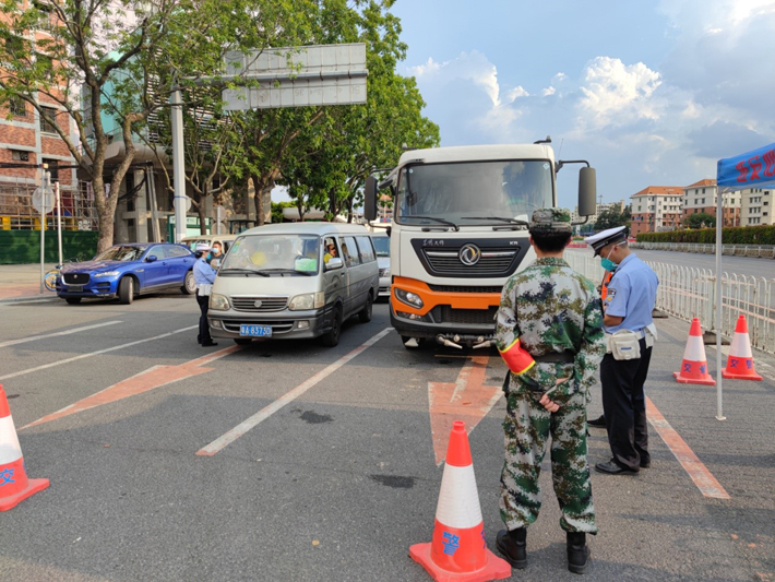 赵指导振奋说到:广药民兵全员到齐,我们迅速整好队列后背上军用背包前往番禺民兵基地,然后有秩序地测核酸,在等结果的途中,我们席地而坐吃份简便快餐同时开了动员大会,武装部处长告戒我们一定要做好自我防护,进入高、中风险严格按“最高级别”穿戴全套防护装具,要密切关注自己身体状况变化,一旦身体不适请立即轮换休息并就近就医,在确保自身安全的情况下,再继续战斗。切记:“只有首先保护好自己,才更好地帮助他人” 核酸结果出后,我们火速前往荔湾芳村各个关卡点, 我们的主要任务是在4个高风险区域的11个执勤点,把卡口管住、到疫区巡逻、帮忙转运物资、现场维持秩序、查验劝离违反防疫规定闯入禁区的群众,辅助警察做好抗疫围闭工作。 第一天,我们从晚上的10点开始,一直持续到第二天的中午12点,连续工作14小时,在值守的过程中,很多群众不断尝试走出封闭区,都被我们一一劝返,大家连续30小时没有睡眠,每个人都很疲惫,简单洗涑后就休息去,养足精神继续工作。