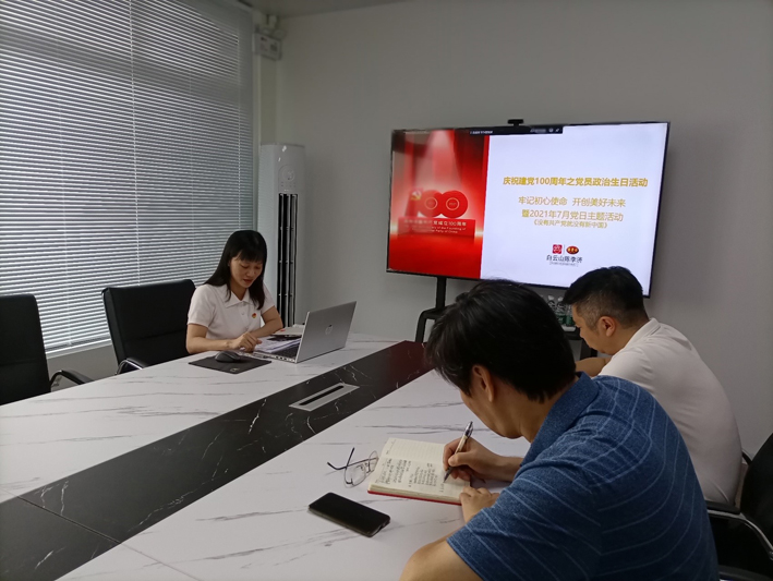 在建党100周年之际,白云山陈李济第三党支部组织了一次具有特别意义的党日活动,支部全体党员以“牢记初心使命,开创美好未来”为主题,进行本期7-9月的政治生日仪式,并共同庆祝中国共产党建党100周年,活动中共有12名政治生日党员。
