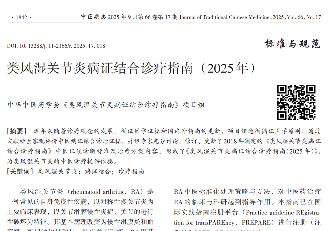 近日,中华中医药学会正式发布《类风湿关节炎病证结合诊疗指南(2025年)》。这一行业重磅文件的出台,标志着类风湿关节炎(RA)中医诊疗迈入更科学、规范的新阶段。其中昆仙胶囊凭借确切临床疗效与高质量循证医学证据,成功获指南“强推荐”,稳居中成药治疗类风湿关节炎(RA)辨病治疗的首选产品行列。