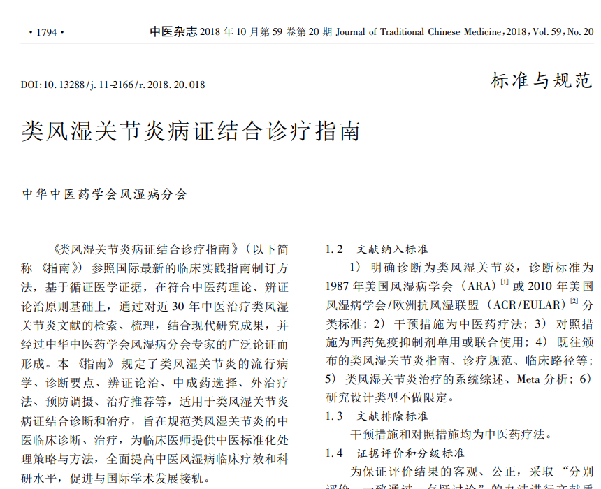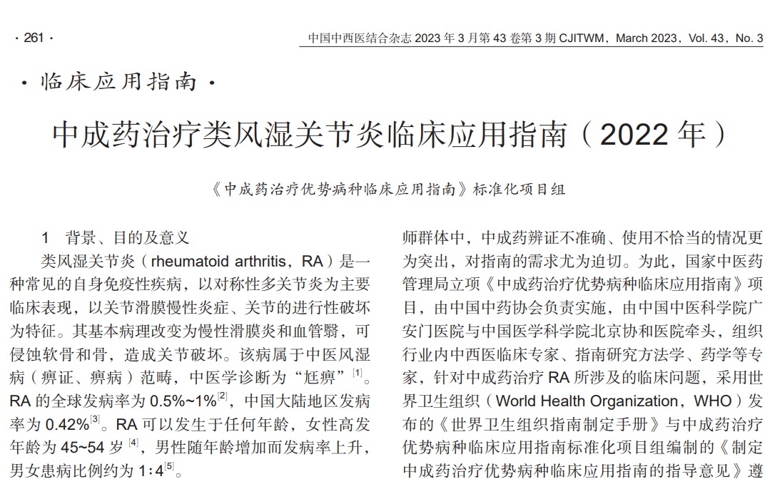2022年《中成药治疗类风湿关节炎临床应用指南》