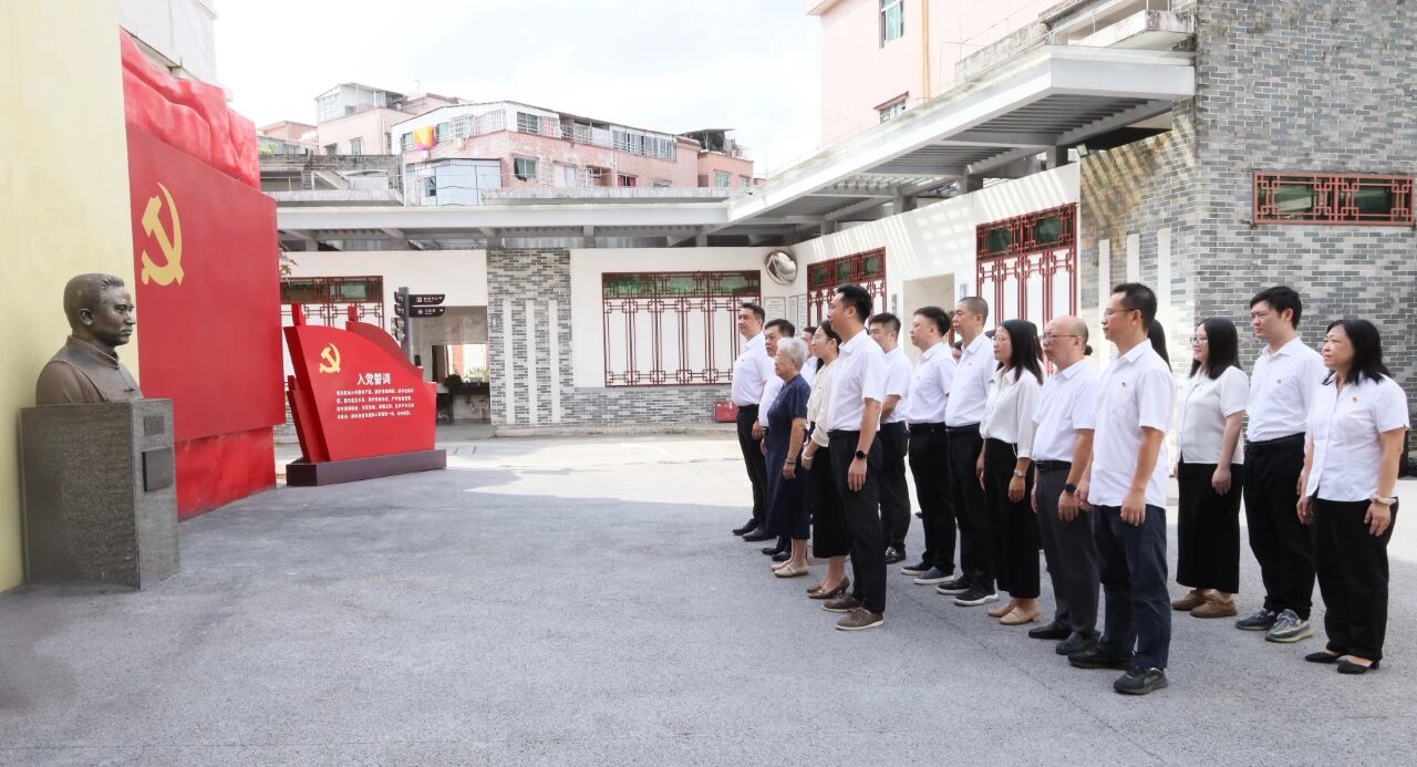 活动当天,庄严肃穆的氛围里,杨殷烈士后人崔静薇老师与陈李济代表刘国伟同志一同走上前,向杨殷纪念像敬献鲜花。淡雅的花束寄托着对革命先烈的无限追思,现场全体人员肃立默哀,于寂静中重温先烈为信仰奋斗的峥嵘岁月,深切感悟那份穿越时空的忠诚与担当。