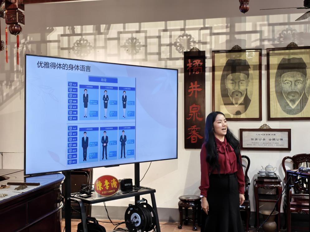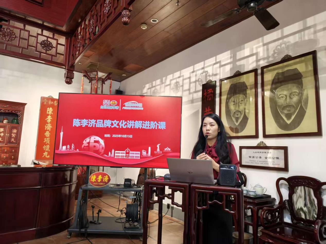 肖俊微从陈李济四百余年发展历程、中药制作技艺、红色文化基因、济世为民精神以及主打产品知识等方面,进行了深入浅出的解读。同时,结合多年讲解经验,她现场传授了包括礼仪规范、表达技巧、声音控制、互动方法与突发情况应对在内的实用技能。