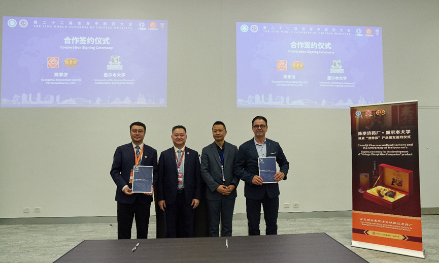 10月30日至11月1日,第二十二届世界中医药大会在澳大利亚悉尼举行。会议期间,获吉尼斯世界纪录认证的“全球最长寿药厂”——广药集团旗下企业陈李济,与全球顶尖高校墨尔本大学正式签署战略合作协议。广药集团党委书记、董事长李小军出席并见证签约,标志着陈李济以“科研合作+权威验证”为核心的中药大健康产品国际化正式启动。