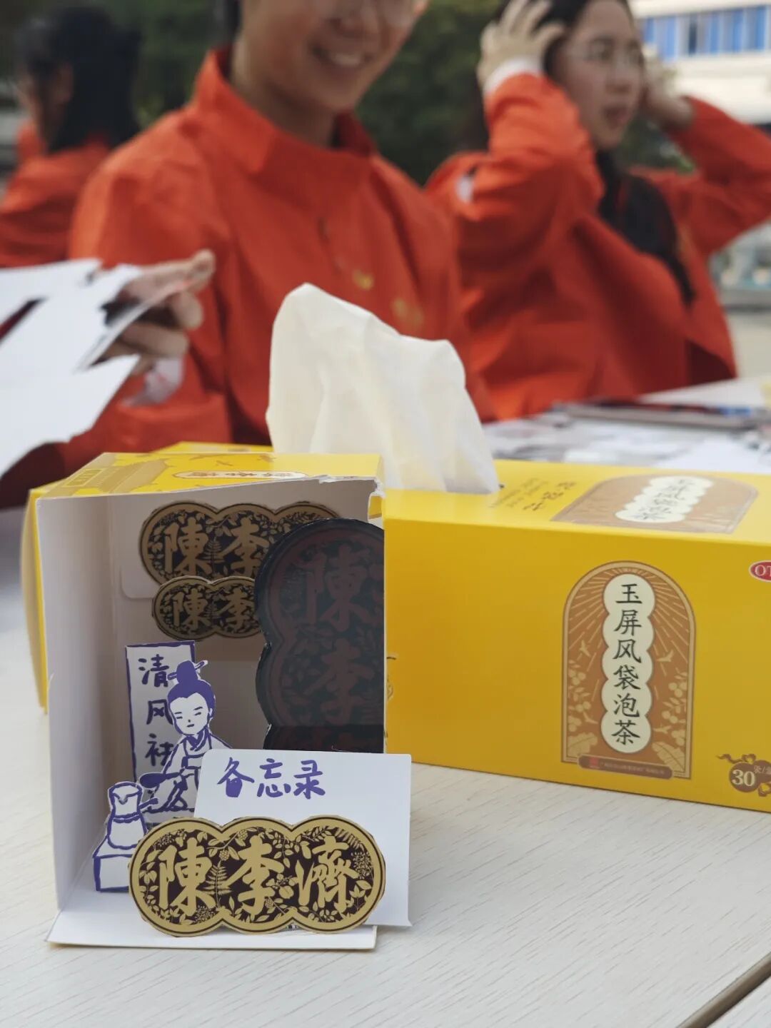 活动现场气氛热烈,大家围绕玉屏风袋泡茶、补脾益肠丸、壮腰健肾丸等陈李济特色产品特性展开研讨,提炼出“壮腰当守立身本,健肾须固廉洁根”“立春鹤唳醒河山、两袖清风破春寒”“陈皮久存方见醇,清廉坚守方显真”等廉洁金句,并制作成创意冰箱贴。在手工创作环节,各组巧用产品包装,结合中医药“扶正祛邪”理念,制作出寓意鲜明的廉洁手工作品。代表们依次上台分享创作思路,将中医药智慧与廉洁文化的融合阐释得生动透彻。活动尾声,全体人员手持廉洁道具合影留念,定格下这场清风拂面的活动瞬间。