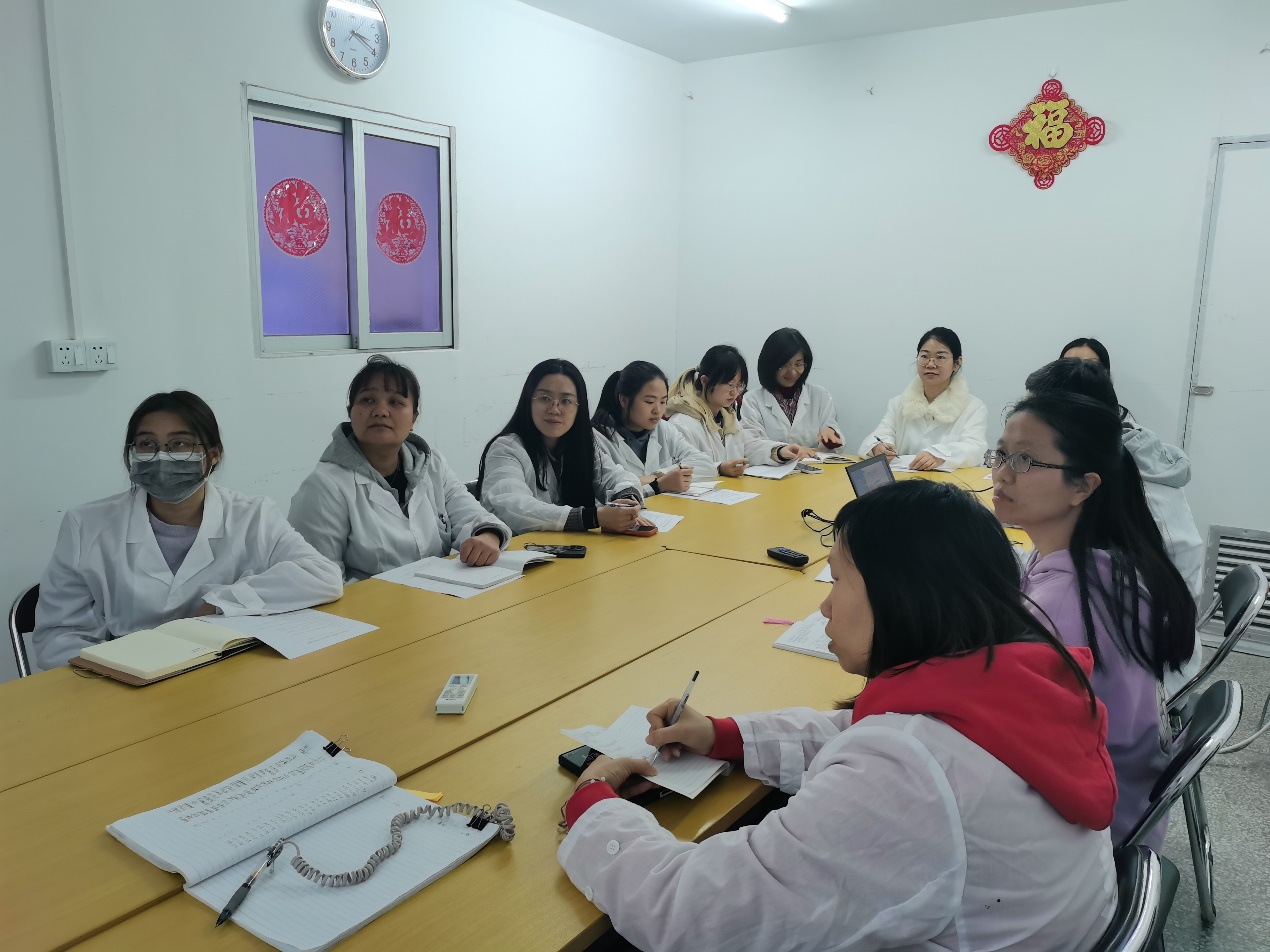 2月12日,培训在检验中心理化2室继续开展。成品组组长林柔敏系统讲解2025版药典成品相关修订内容,对显微鉴别、薄层色谱鉴别、氮含量测定等项目的检验操作及关键细节进行详细阐述。成品组副组长霍洁贞则对中间产品、成品及稳定性考察样品的崩解时限、包装外观、重量差异、水分测定等常规项目的检验操作进行讲解,并对部分操作难点进行操作演示。
