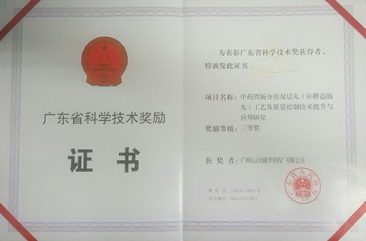初春2月,迎来喜讯!在省委、省政府召开的广东省创新发展大会上,会议表彰了获得2016年度广东省科学技术奖的先进单位和个人。广州白云山陈李济药厂有限公司项目“中药胃肠分溶双层丸工艺质量控制技术提升与应用研究”荣获广东省科学技术奖三等奖,这是继2014年荣获海珠区科学技术奖,2015年获广州市科学技术奖后,陈李济再一次获得政府的科技奖项。